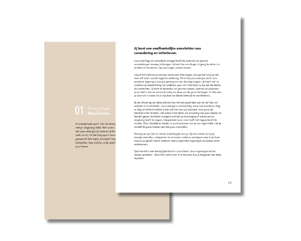 De Energy Guide is een persoonlijke handleiding waarin je leest hoe jouw energie werkt, hoe jij door het leven beweegt en hoe anderen jou zien. Elk onderdeel bevat handige tips, waar je direct mee kunt experimenteren.